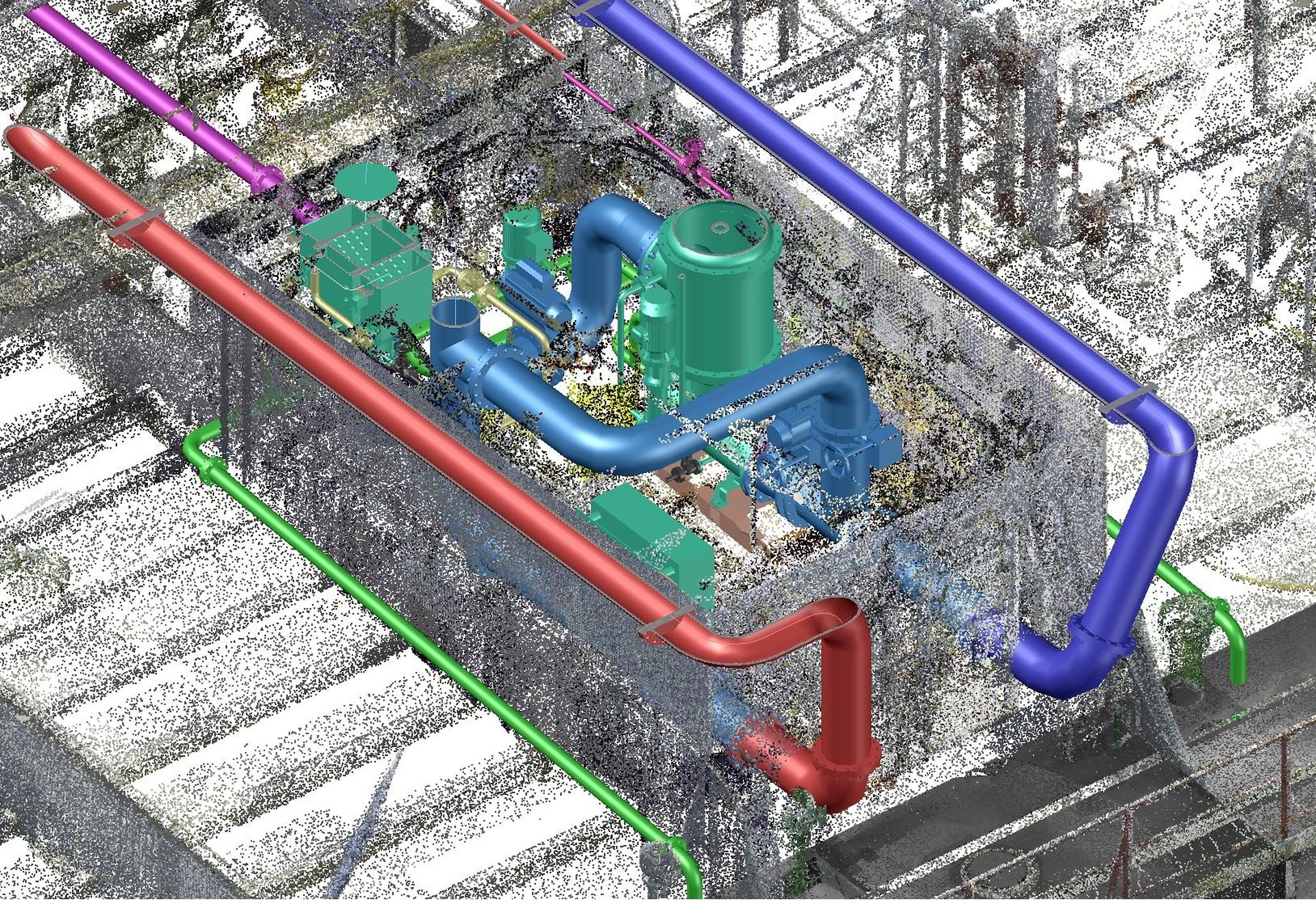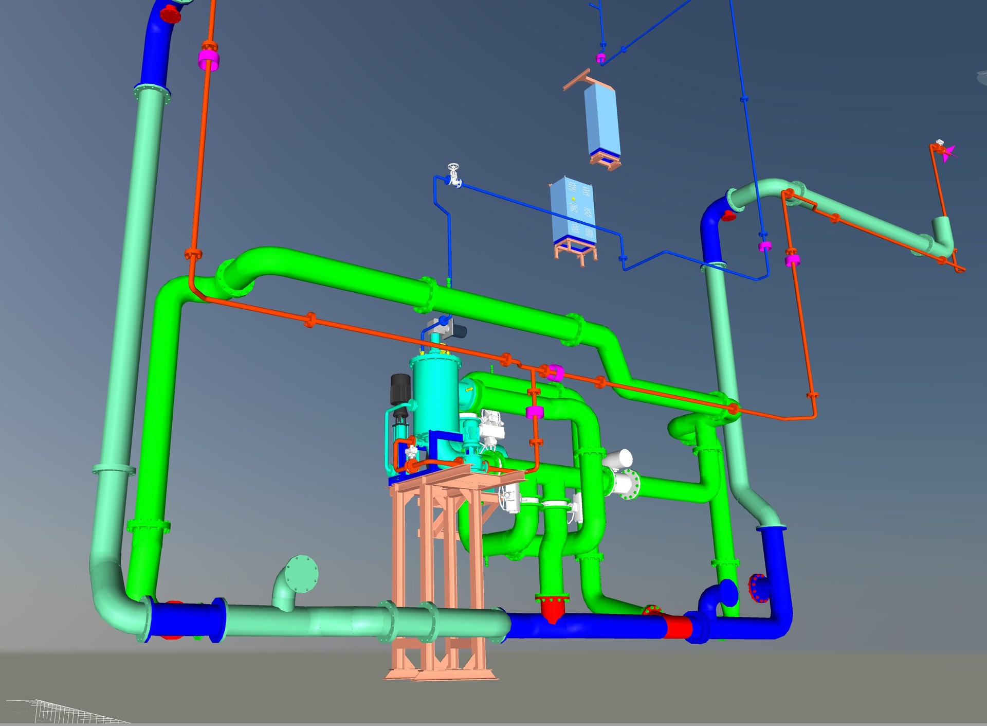 Detailed 3D routing of piping systems, ventilation ducts, and cable trays within the ship’s hull to ensure optimal layout, clash avoidance, and compliance with design and installation requirements.